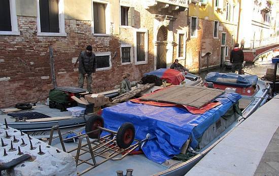 We were there as part of a group of members of Arzana‘, an association (of which Lino is a founding member) dedicated to the conservation of old Venetian boats of every sort. Whenever a film needs boats, the boats also need rowers, so anybody who applied and was chosen by the film company got a chance to participate in film-making for at least a day.