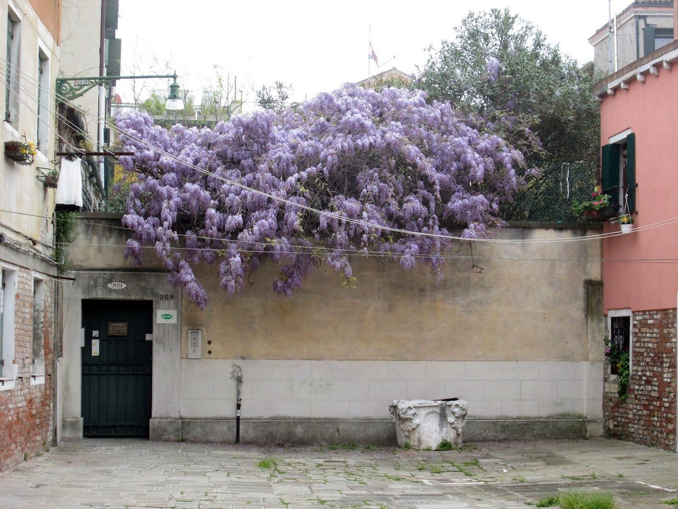 Then the wisteria steps into the spotlight. It seems to be everywhere but I count on seeing it in the little campo behind us.The Ristorante in Paradiso in the Giardini facing the lagoon never disappoints where its wisteria is concerned. I don’t know about the food.