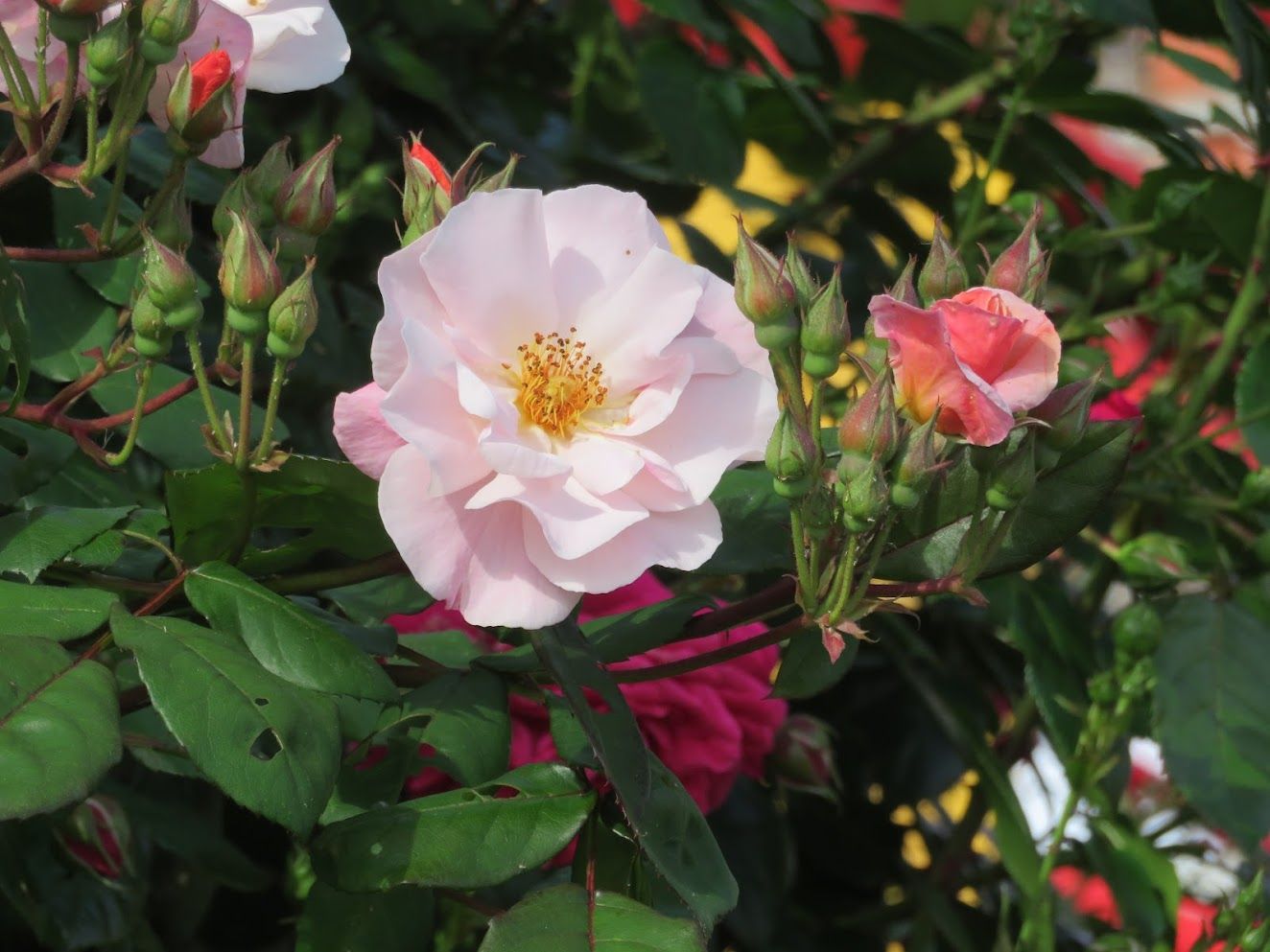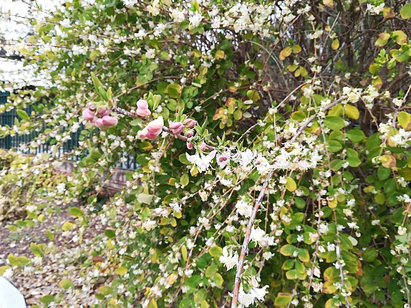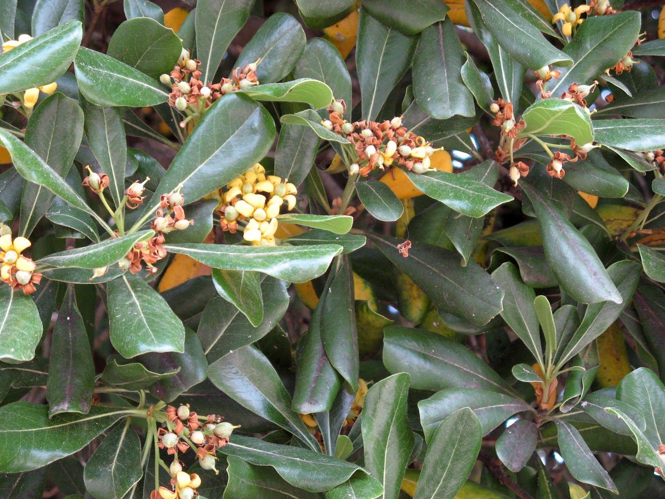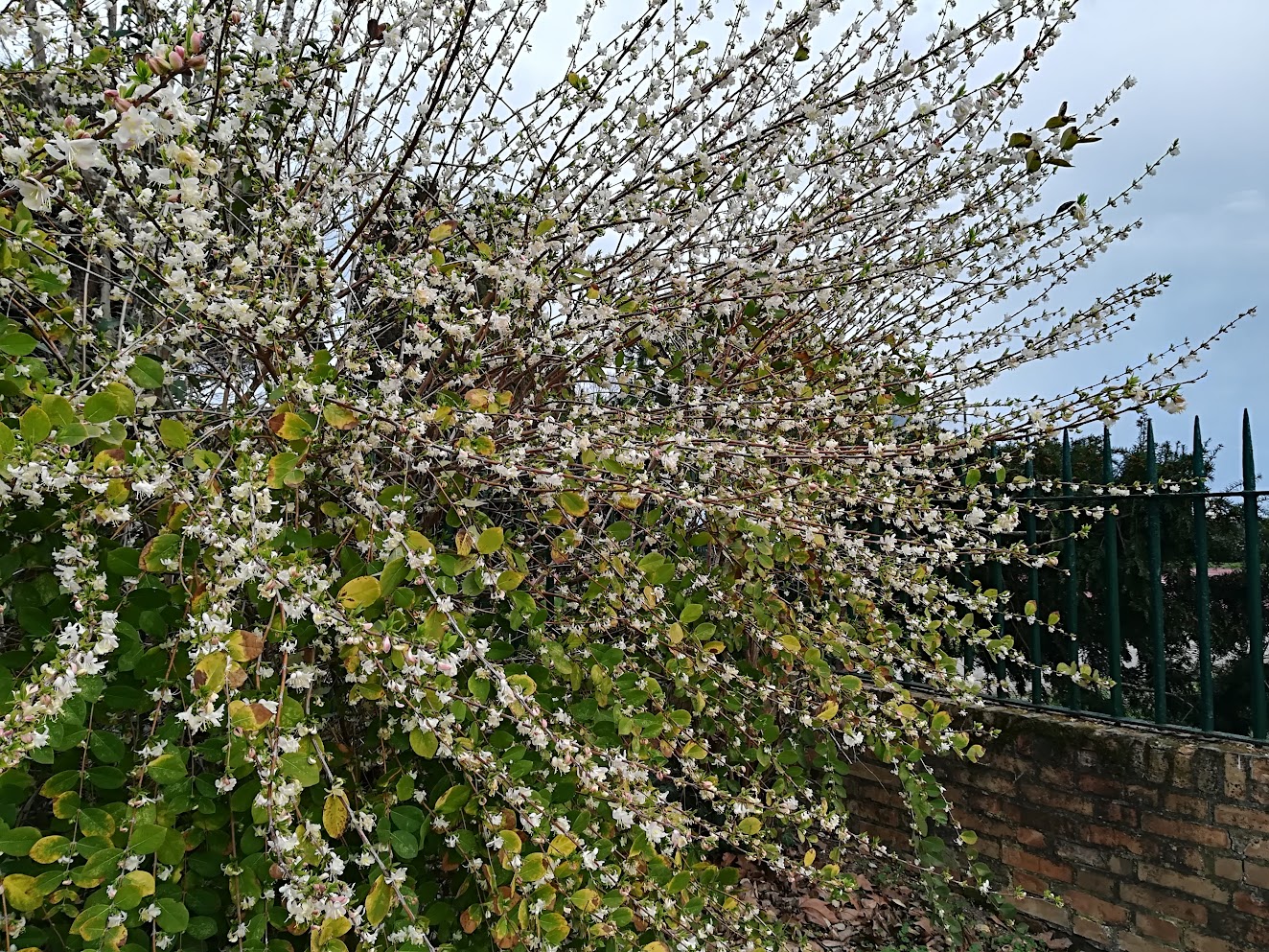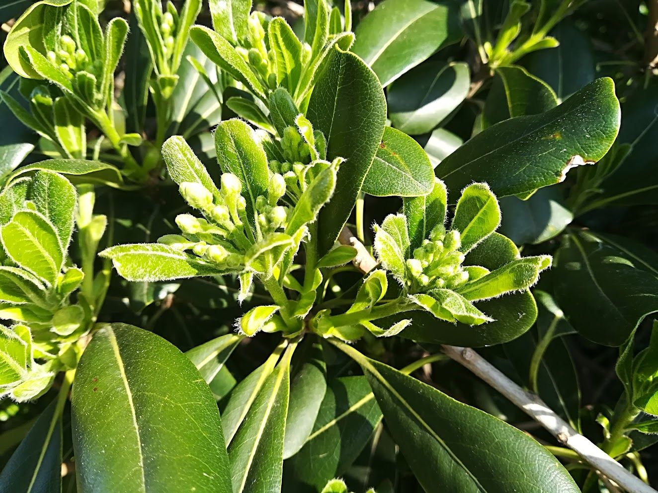 At just the right moment, the artichokes, poppies and tamarisks (here they are not pink, as you see) are all out together. Tamarisks also manage a faint perfume, which is charming.Going to be figs when they grow up. I put this picture in just because I think it’s so cool, but then my rudimentary research reveals that figs have flowers, but are to be found inside the fruit. That seems grotesque but it obviously works so never mind.This luxuriant sweep of shrubbery at the Giardini is Pittosporum tobira. My source says it is “native to eastern Asia and is widely grown as an ornamental plant in Mediterranean climates. The plant produces small, inconspicuous greenish or whitish flowers that grow in clusters in the leaf axils.” Until late May its only virtue is being green. But then the flowers begin to open up and become conspicuous. My source says the flowers are known for their “intense fragrance,” and that is an understatement.Aren’t those little buds lovely? And their first aroma, after the long winter, makes you want to open your arms and invite them to your home and bring them cool drinks and expensive snacks and ask them if they’re happy and insist that they tell you if they need or want anything. That’s the first week or so. But like “The Man Who Came to Dinner,” they settle in, become obnoxiously comfortable, and decide they don’t ever want to leave. As the late spring days pass, they lose their early charm and frankly they don’t care.Time passes, and as the buds mature in the sunshine the fragrance becomes denser, heavier, more aggressive. The perfume that once was so ingratiating begins to evolve into a sort of murmured menace. No longer delightful, the odor verges on nauseating. And that’s not the point at which they fade and die. No, they remain at that stage until they get bored revolting you, and then they stay for a while longer. This extraordinary plant travels the world under various aliases: Australian laurel, Japanese pittosporum, mock orange and Japanese cheesewood. Call it what you will, let it pass by. Turn off the porch light, lower the blinds, pretend you’ve had to leave unexpectedly for Kiribati. Or at least stop using the Giardini vaporetto stop and just walk to wherever you’re going.Roses in the Giardini.Honeysuckle (Lonicera tatarica) at Sant’ Elena.