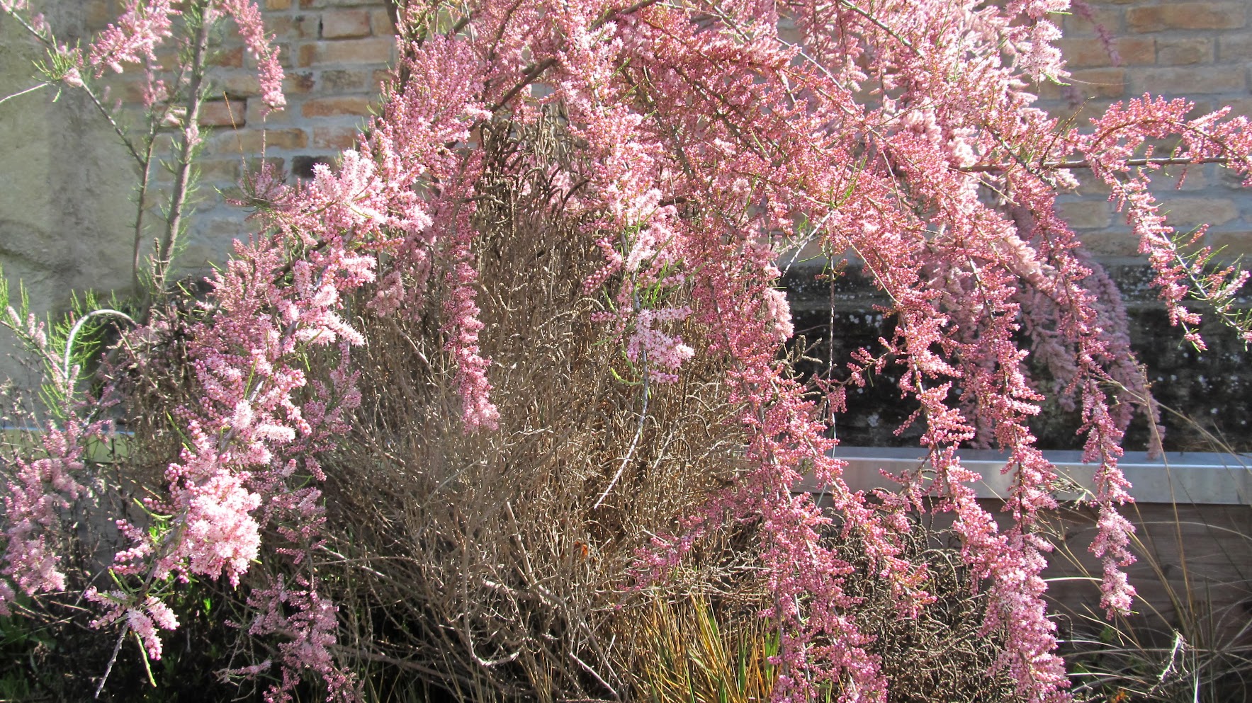 Late summer brings out the Erica; I do not know which of the hundreds of species this one may be. These are generally called “heath” or “heather.” That’s all I can tell you, apart from the fact that they are protected and you really should resist taking any home.This flowering shrub on the Vignole may be fleeceflower, or it may be silver lace vine. I hope some knowledgeable reader will settle this for me. Meanwhile it’s beautiful, and it lasts for weeks. Too bad it’s probably invasive, but we all know people like that. You take the fluffy with the bad.