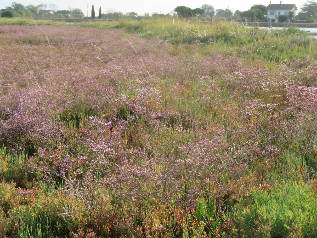 Oleander (Nerium oleander). I hope they leave it alone, it’s perfect just the way it is.Limonium narbonense comes out in mid-August. Various relatives are called sea-lavender, statice, caspia, or marsh-rosemary.
