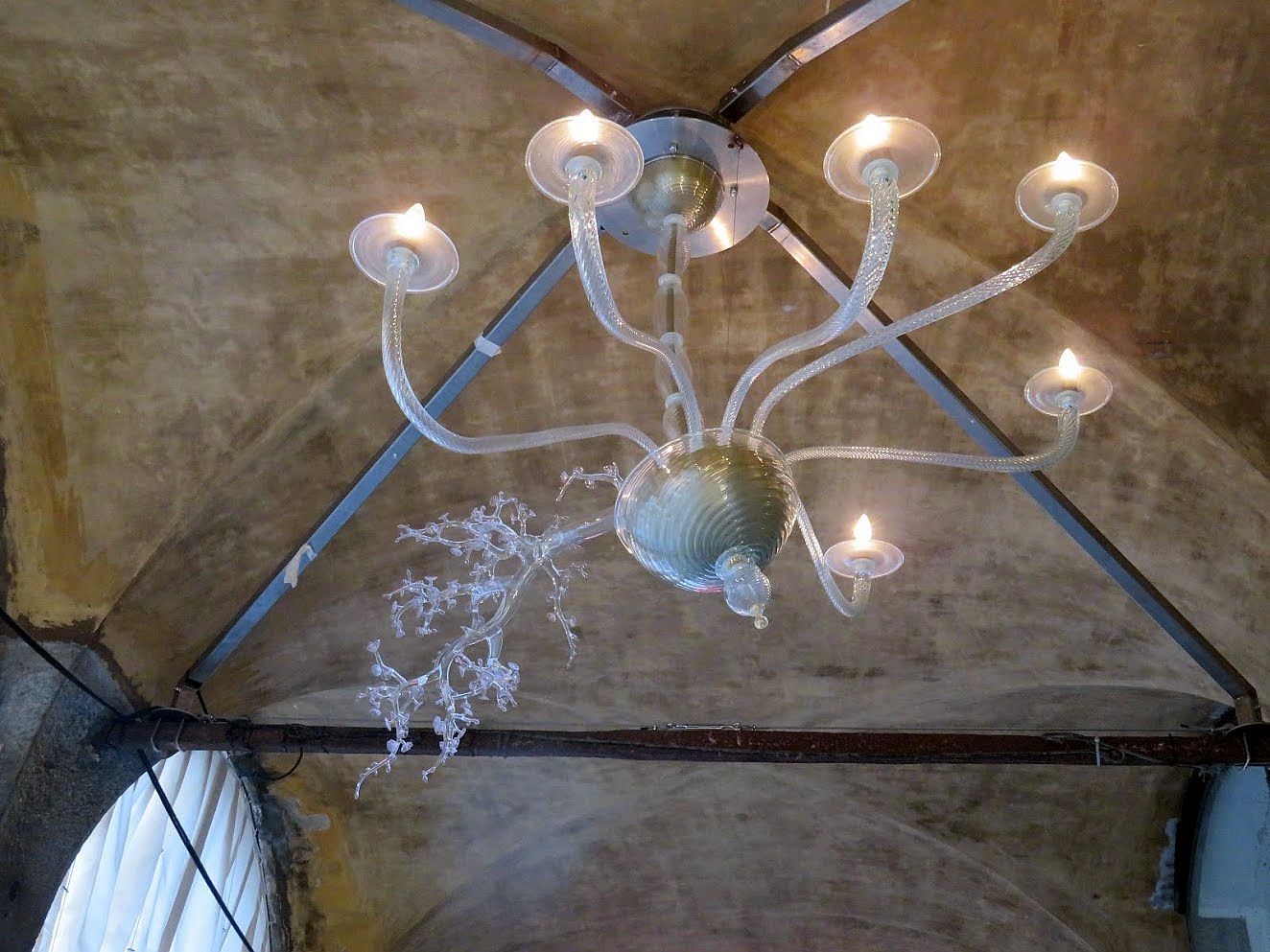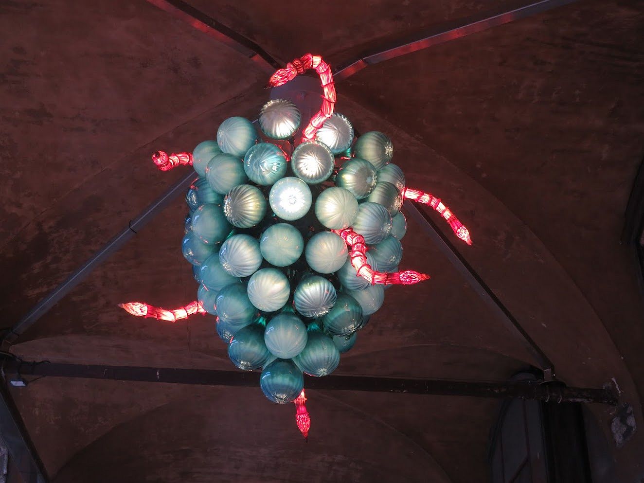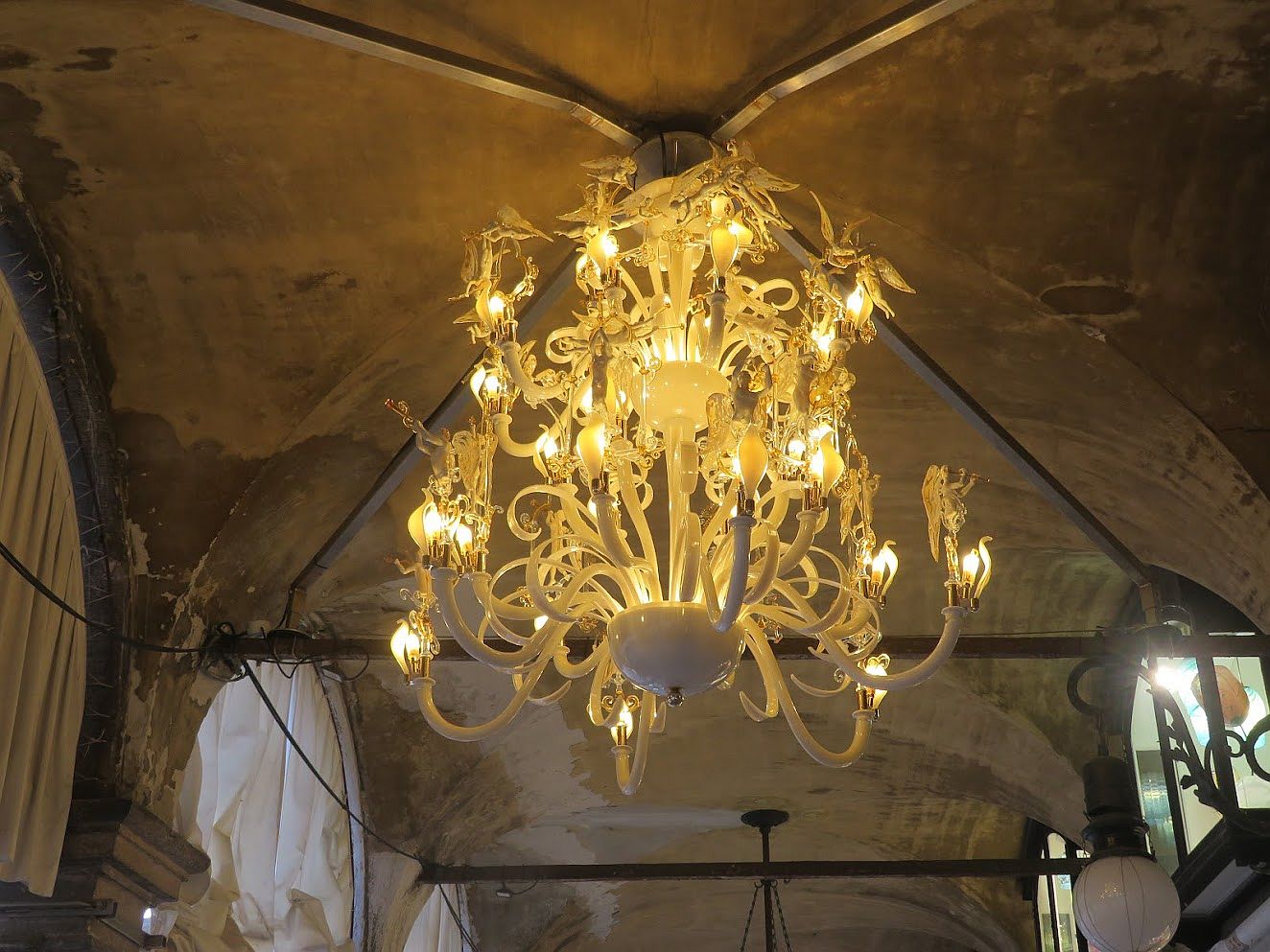 Last November 22 the passageway under the Procuratie Vecchie at the Piazza San Marco lit up with 12 glowing glass chandeliers. Yes, I’m very late to this subject, but I do not go to the Piazza every day, nor do I subscribe to the “Murano Glass Daily Astonisher” (totally made up).