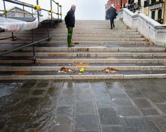 Naturally we went out to buy the newspaper and look around the neighborhood. I don’t usually take pictures of acqua alta anymore, as they have long since become repetitive. But this was toward the unusual side of the daily scale of nuisances.