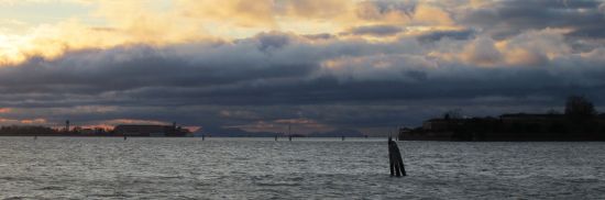 At certain moments even the sky began to dress itself up. This little costume was delivered by a ferocious northeast wind.The same moment as the picture above, but looking sunset-ward. To give you an idea of how strong the wind was, you should know that those mountains silhouetted in the center of the scene are the Euganean Hills, 30 miles away.