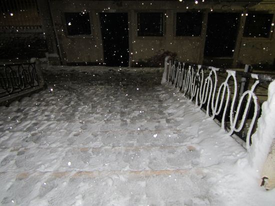 Monday night looked sort of like this, except that the water was much higher and there was more snow, which was lifted up in large undulating slabs like polar icepack. But this is just our little corner of the universe. Multiply all this by quadrillions and you can imagine the Piazza San Marco. Still, the real problems weren’t where there was water, but where there was snow. And ice. And so forth.